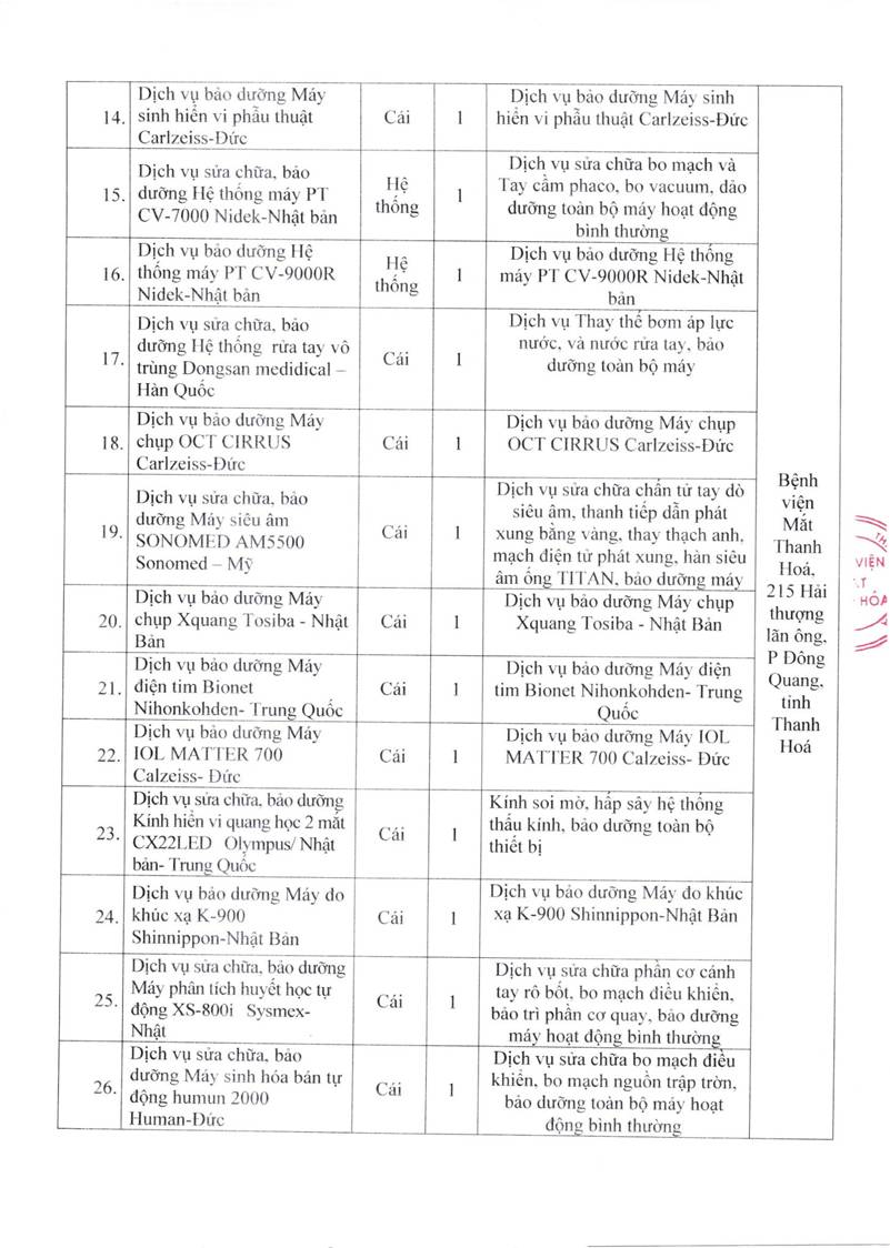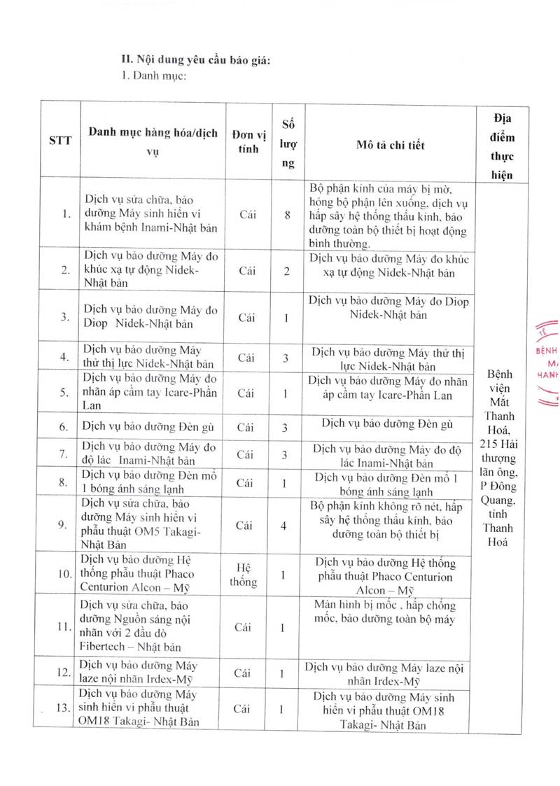 - Yêu cầu báo giá cho gói thầu mua thuỷ tinh thể nhân tạo của Bệnh viện Mắt Thanh Hoá năm 2025-2027