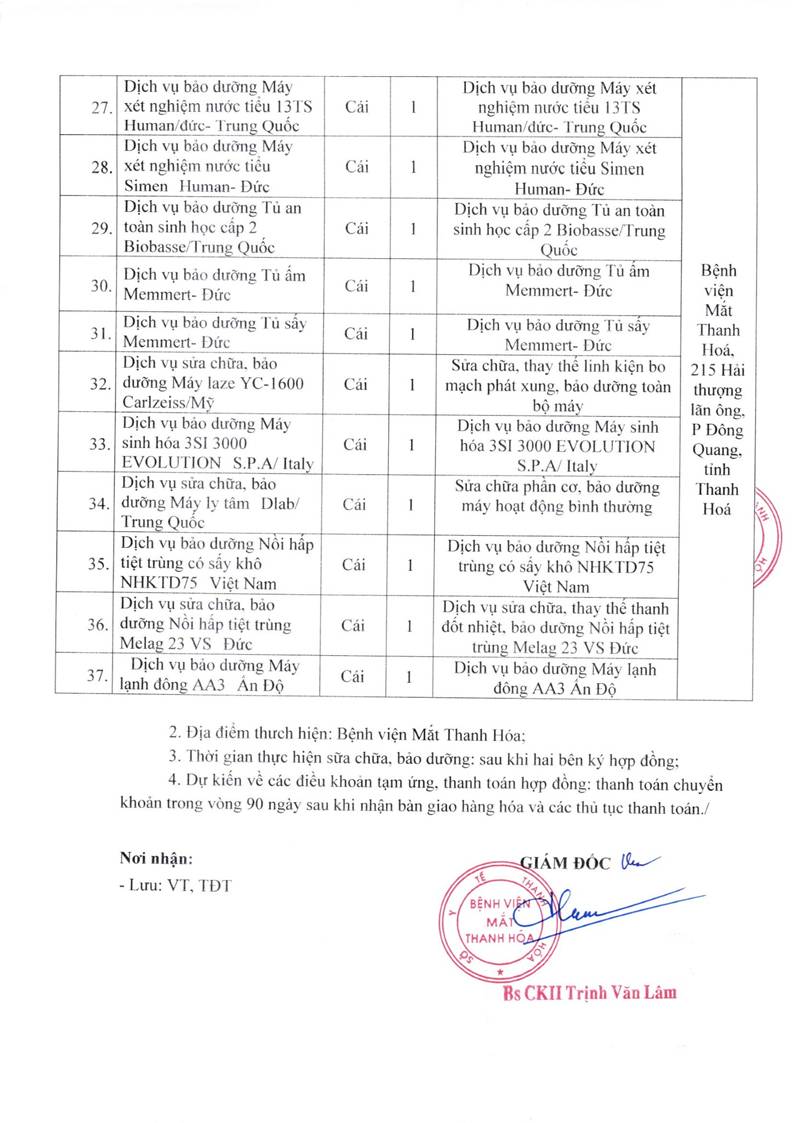 - Yêu cầu báo giá để tham khoả, xây dựng giá cho gói thầu sửa chữa, bảo dưỡng thiết bị y tế