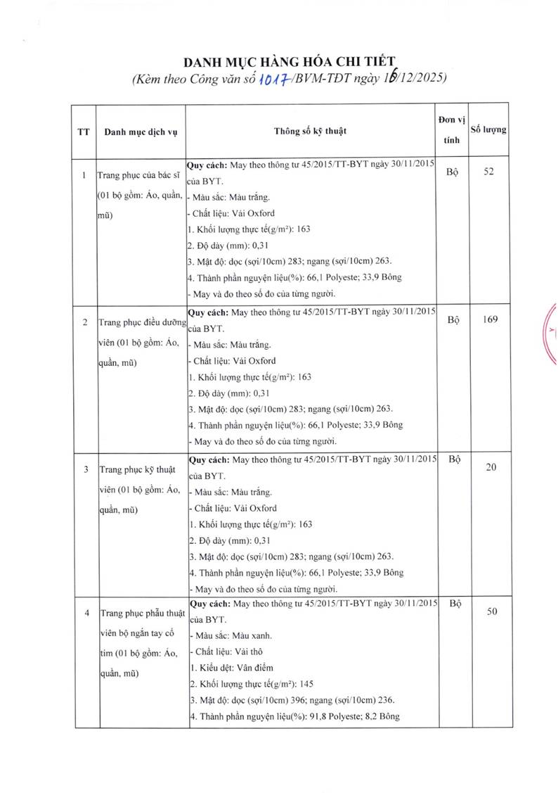 Yêu cầu báo giá dv tư vấn thẩm định giá cho gói thầu trang phục y tế...